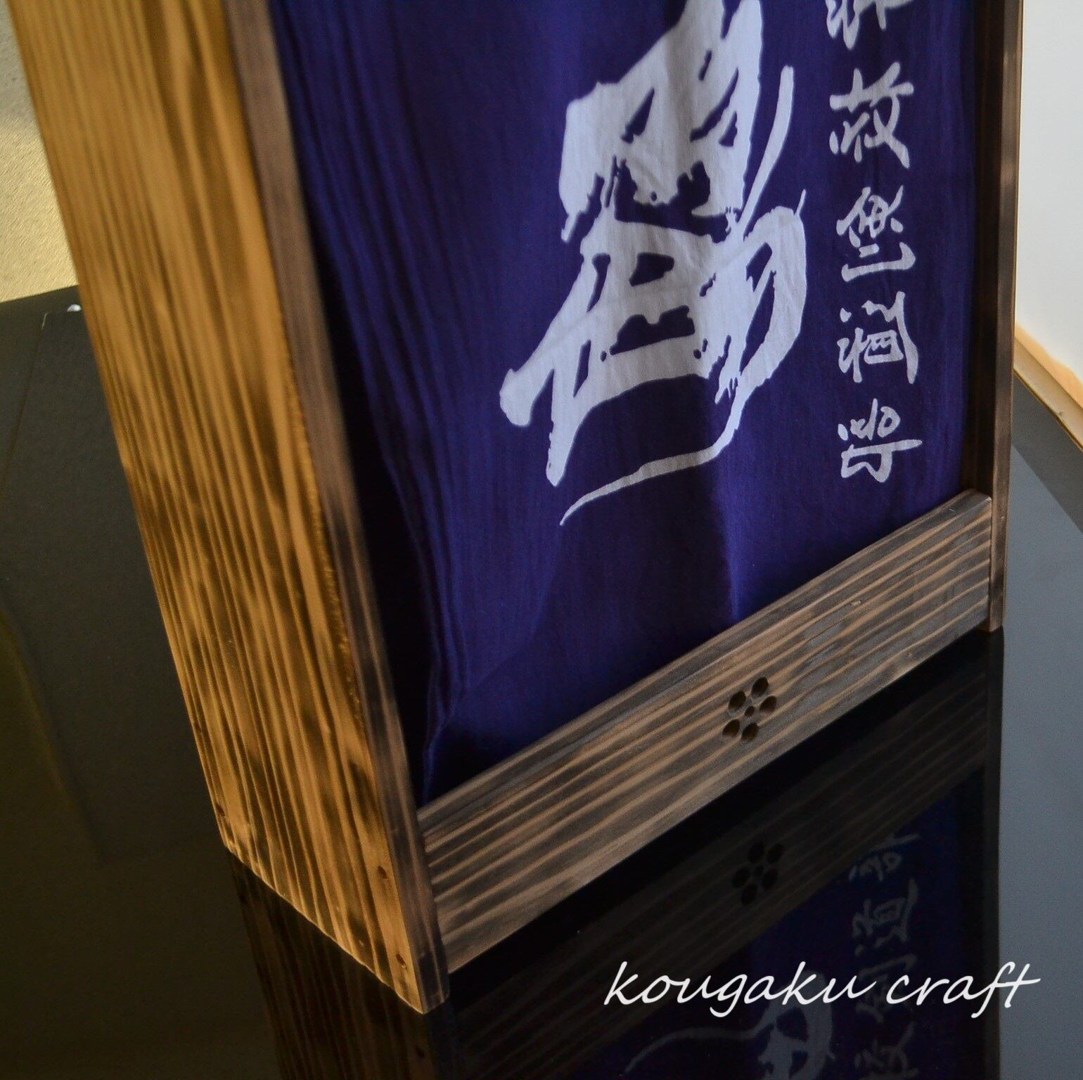 天然の国産杉を炙って木目を浮き上がらせて、和の雰囲気が